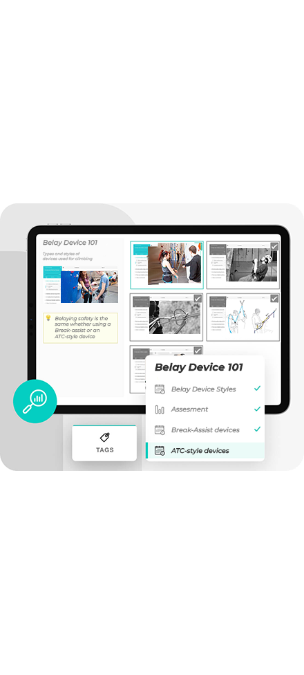 We're developing the first universal climbing gym training platform. We're focused on providing deeply engaging training resources to all your employees. This includes skill development tools that employees can use to effectively create safe, meaningful and engaging experiences for your guests.